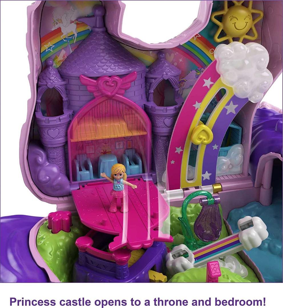 Polly Pocket Unicorn Party Large Compact Playset With Micro Polly Lila Dolls 25 Surprises To Discover Fun Princess Party Play Areas Bouncy House Castle Swings Water Floatie More Hobbies