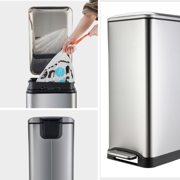 Homfa Stainless Steel Trash Can Silent Close Lid 13 Gallons Waste Bin Kitchen Garbage Can With Removal Inner Basket For Home And Office Grey Walmart Com